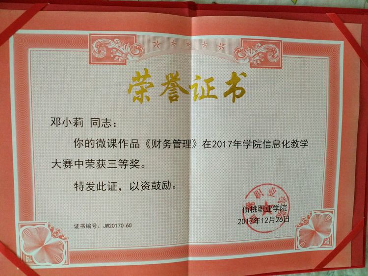 承担会计专业核心课程初级会计实务,成本核算实务,财务管理实务等教学工作