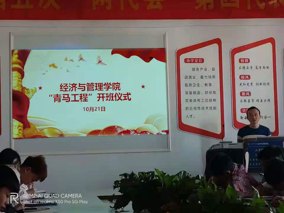 2020年10月21日,我院在信息大楼601举行了第一期青年马克思主义者培养工程(简称“青马工程”)的开班仪式。本次培训班参加人员主要包括学生党员、入党积极分子、 学生骨干等。出席本次开班仪式的有经管院党支部书记印德彬、副院长罗永平、团总支书记樊可欣、学生科科长印杰。