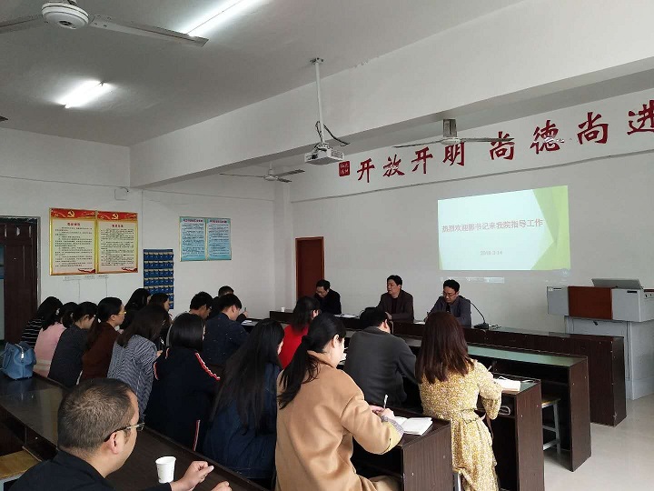 3月10日下午,郭百高书记到经济与管理学院调研。在调研过程中,郭书记首先肯定了我院近期工作,也指出经济与管理学院要全面提升教师的综合素质,加强学生教育管理工作,凝练专业特色,提升专业影响力,优化课程设置,增强岗位的针对性,提高师德师风。同时要求广大教师抓好抓牢党建工作,把思想政治工作贯穿于教育教学全过程,下大力推进四大工程建设,尤其是课程改革,增强课程实用性,一刻也不能放松抓好安全稳定工作。郭书记希望广大发扬五大作风,不忘初心,为学院“二次创业”实现跨越发展做出自己最大贡献。
