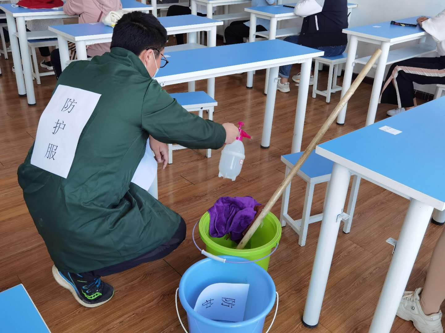 演练中,一名学生在进教室检测时出现体温异常,任课教师立即通知辅导员将其带入楼层健康观察区进行二次测温、仍异常就被送入学校健康观察室进行第三次测温。课堂上一名学生突然出现呕吐现象,任课教师将学生带到楼层健康观察区并立即通知经管院应急处置人员,应急处置人员将学生带到学校健康观察室,同时现场消杀人员对学生呕吐物进行消杀处理。这两处应急处置演练检验了我院处置预案的科学性和有效性。