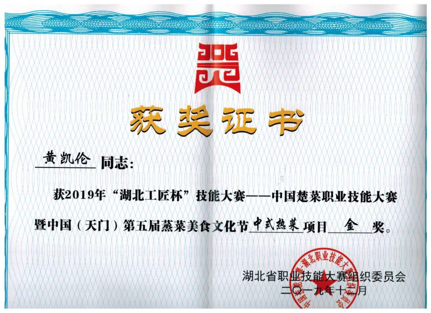 烹调工艺与营养专业学生获奖