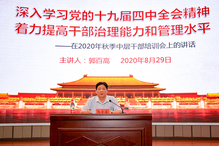 8月29日至30日,学院举行2020年秋季学期干部培训会,深入学习党的十九届四中全会精神,提升干部治理能力和管理水平。党委书记郭百高、院长李立勇作专题辅导报告。党委副书记梁晓华作培训总结。