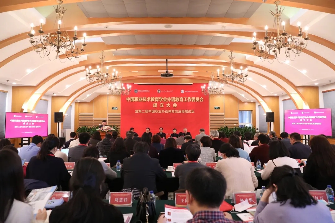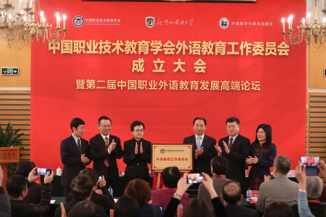12月18日上午,中国职业技术教育学会外语教育工作委员会成立大会暨第二届中国职业外语教育发展高端论坛在北京外国语大学成功举办。我院党总支副书记王同飞、大学英语教研室主任杨秀华受邀作为湖北省代表现场参加大会。仙桃职业学院也受邀作为首批会员加入该委员会。