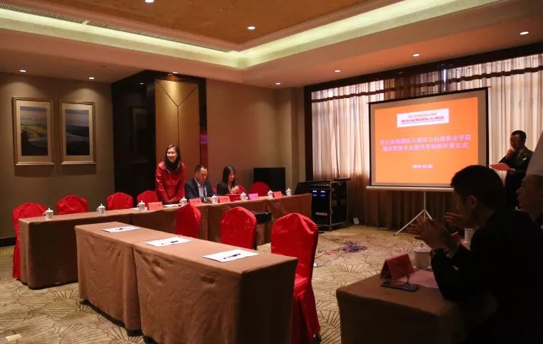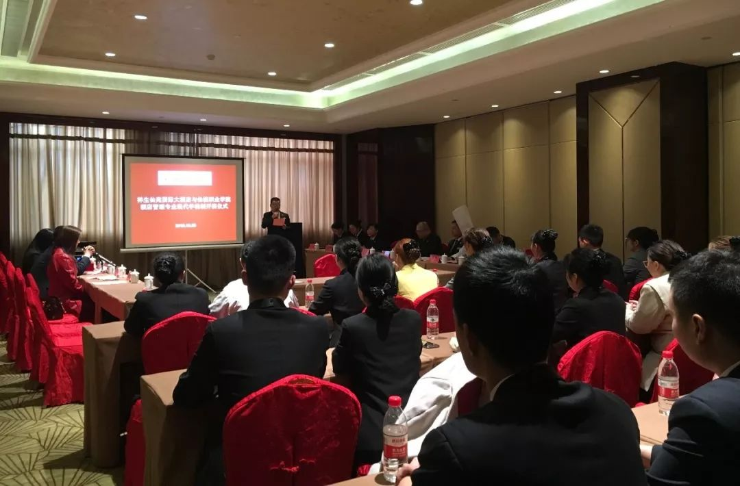 仪式由酒店人资总监蔡涛主持,隆重介绍了出席本次仪式的仙桃职业学院经济管理学院院长印德彬先生、副院长王玲女士等一行领导。