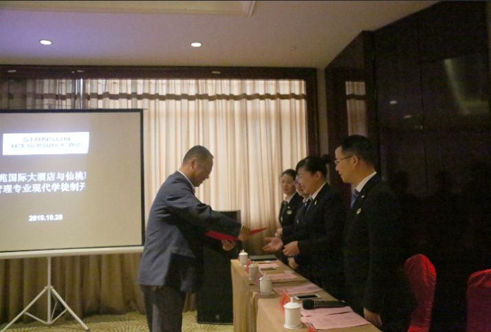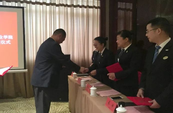 仙桃职业学院经济管理学院印德彬院长分别为酒店此次派出的七位高管颁发了导师聘书。