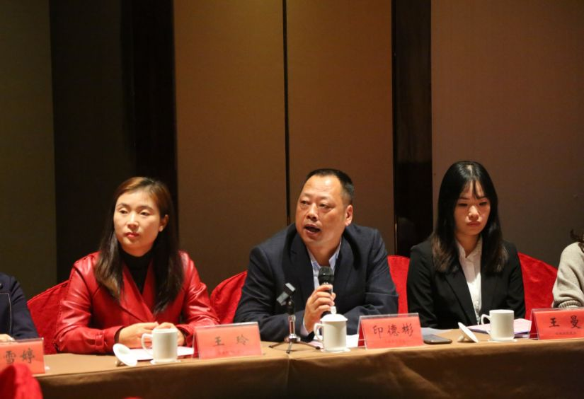 仙桃职业学院经济管理学院印德彬院长代表仙桃职业学院经济管理学院全体师生感谢酒店对此次活动的大力支持和高度重视,并介绍了现代学徒制的基本情况,对导师、学生和职院的教师都提出了诚挚的建议,并对全体学生予以了殷切的期待。